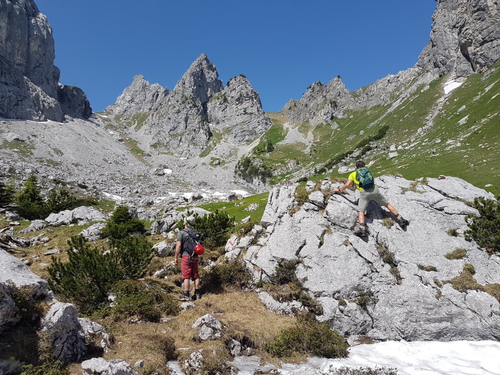 Hab die Tor am 29.09.2018 von Obergrünau ausgemacht. Weglos und auf alten Jägersteigen bzw. Latschengewühle bis fast zum Gipfel. Von dieser Seite aus im Netz und den Büchern noch keine Begehung...